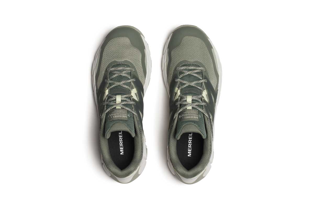 Lagana, prozračna cipela za hodanje namijenjena raznim aktivnostima u prirodi. Gornji dio se sastoji od prozračnih tekstilnih dijelova u kombinaciji sa sintetičkim materijalima, koji nude iznimnu prozračnost i ugodno prianjanje na nogu. Lagana EVA pjena u međupotplatu pruža stabilnost i udobnost pri svakom koraku. Flexconnect tehnologija u potplatu omogućuje bolji kontakt s podlogom po kojoj koračamo. Merrell Sticky guma na potplatu pruža izvrsno prianjanje na raznim površinama. Vezice, mrežasta podstava i uložak izrađeni su od 100% recikliranih materijala.